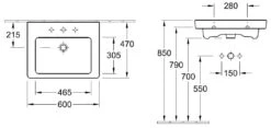 Villeroy & Boch Subway 3.0 – Wastafel 600×470 Mm, Met Overloop, Met Kraangat, Alpine Wit 4A706001
