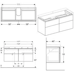 Geberit VariForm – Wastafelkast, 1350x510x235 Mm, 2 Laden En Stankafsluiter, Eik 501.181.00.1
