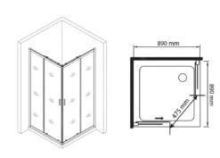 Lansanit LitIN Vati – Douchecabine 4 Delig 900×900 Mm, Glanzend Aluminium/helder Glas QR99-190-C