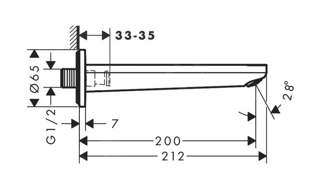- lengte uitloop: 200 mm