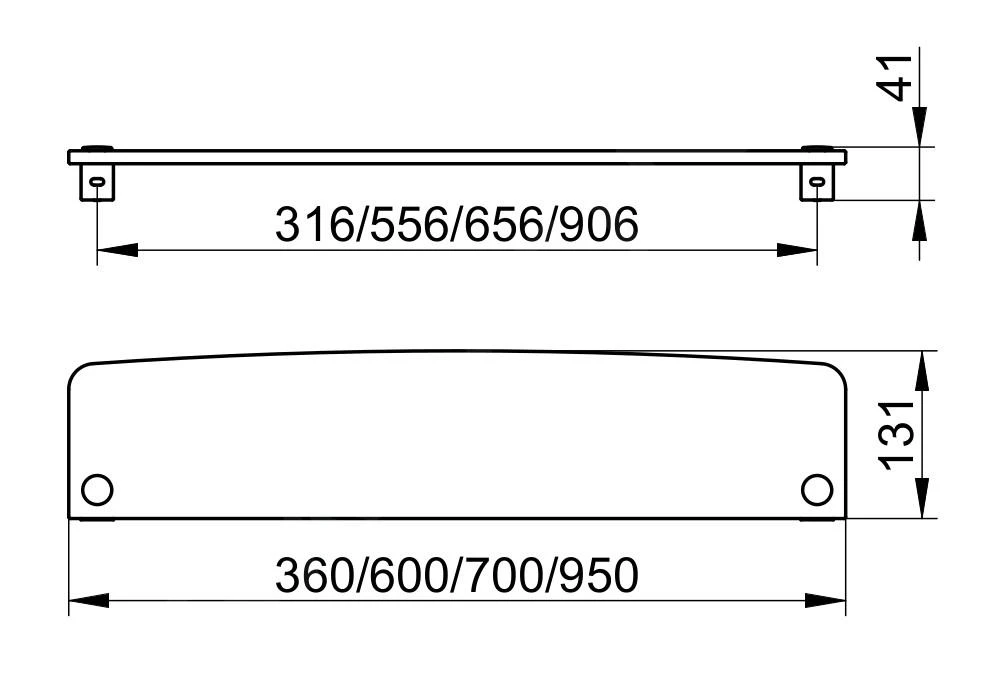 - totale afmetingen: 600 x 131 mm