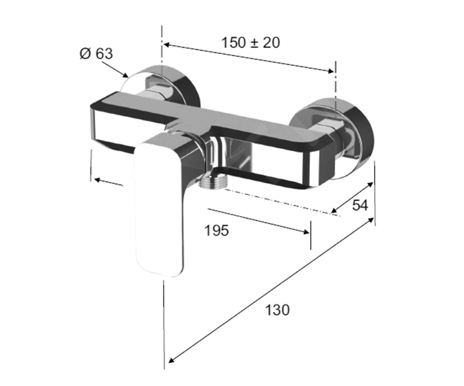 - hartafstand wateraansluiting: 150 mm