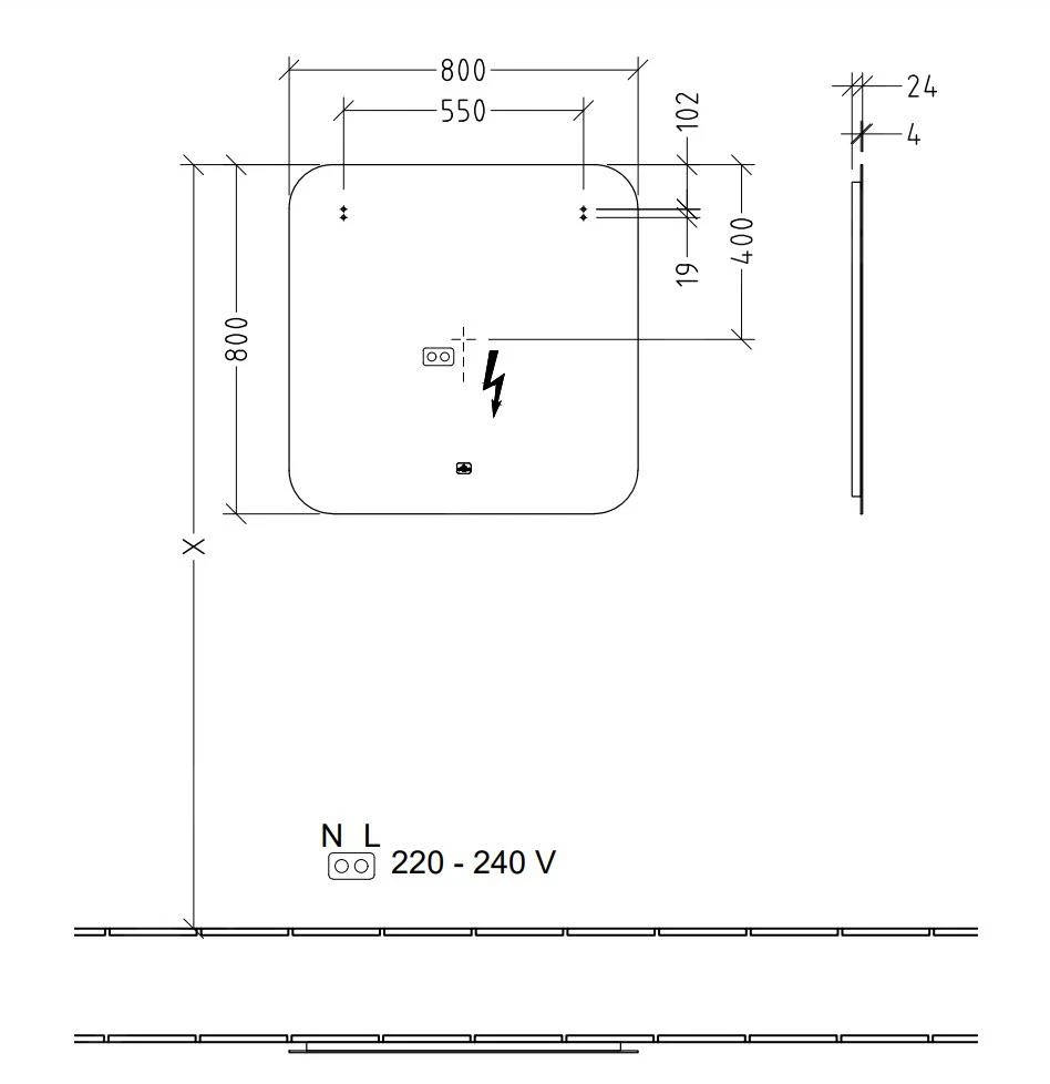 - afmetingen: 800 x 800 x 24 mm